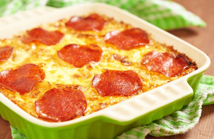 This tasty Forkly recipe gives you all the comforting satisfaction that casseroles have to offer with a delicious spin of pizza flavors. To save time, prepare the pizza casserole the night before so it's ready to place into the oven as soon as you're home from work the next day.